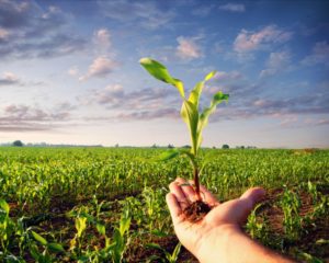 Hand holding a corn plant